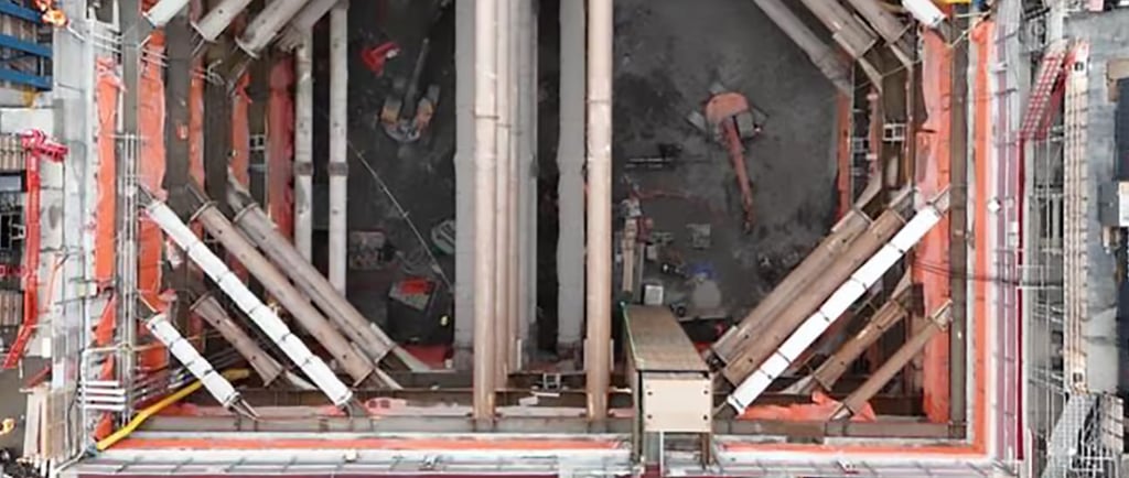 현재 남측 공사 구간의 굴착은 거의 마무리 단계에 접어들었으며, 플랫폼이 들어설 지하 공간 형태가 이미 완성된 상태입니다.